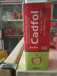 Cadfol syrup contains Ferrous ammonium citrate , Folic acid and Cyanocobalamin