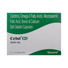 Celol D3 capsules is the versatile formulation to meet calcium supplementation in deficiencies and growth. Celol D3 capsule contains a balance mix of Calcitriol, Calcium carbonate, Docosahexaenoic acid, Eicosapentaenoic acid (EPA), boron, Folic acid, and Methylcobalamin.