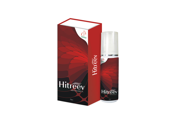Hitreev Hair oil contain Pistacia lentiscus, Crocus sativus, Orchis mascula, Emblica Officinalis, Lawsonia inermis, Eclipta Alba, Cicer arietinum, Valeriana officinalis, Prunus Amygdalusbatsch, Hydrocotyle Asiatica, Acacia Concinna, Cocos nucifera, Curcuma Zedoaria, Adiantum Capillus Veneris, Santalum album, and Hibiscus rosa- Sinensis as key ingredients.