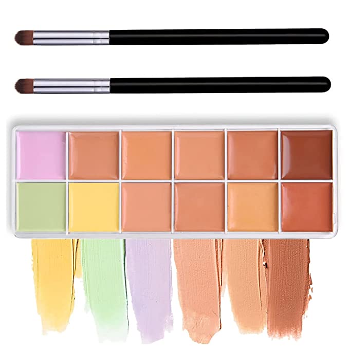 【12 Colors Shades】The Cream Contour Palette contains 12 blendable creams that are designed to concealer and highlight your face.Puts everything you needed for a flawless contour look is in one palette.