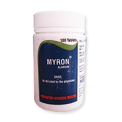 Myron is a polyherbal preparation recommended for leucorrhoea. It contains Hirabol, Guggul, Kasis Bhasma, Lodhar, Dhavdi Flower, Shilajit, Bang Bhasma, Abhrak Bhasma, Vasaka Leaves, Rasvanti and Vasaka Ghan.