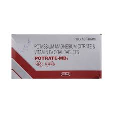 Potrate MB6 Tablet contains Potassium Magnesium Citrate (978mg) and Pyridoxine Hydrochloride (15mg) as active ingredients.