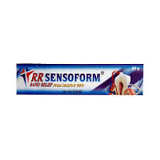 RR Sensoform Dental Gel is a medicated desensitizing toothpaste that contains Strontium acetate in a pleasantly flavored base. It protects teeth from sensitivity, cavities, plaque, fights gum problems and strengthens tooth enamel. It is indicated in sensitivity due to attrition and abrasion (wear and tear of teeth), natural gum recession (lowering down of gums from their natural level) or post scaling recession, abrasion on the neck of the tooth, bad breath and teeth prone to decay.