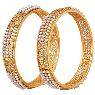 YouBella Designer Gold Plated Jewellery Pearl Studded Bangles for Women and Girls